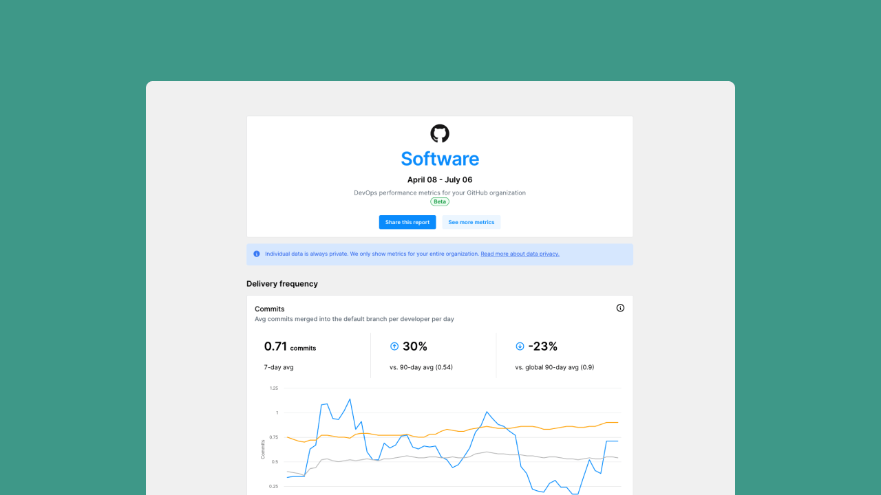 Getting started is fast and simple with fully-automated metrics that work out of the box. Just connect a Git provider.
