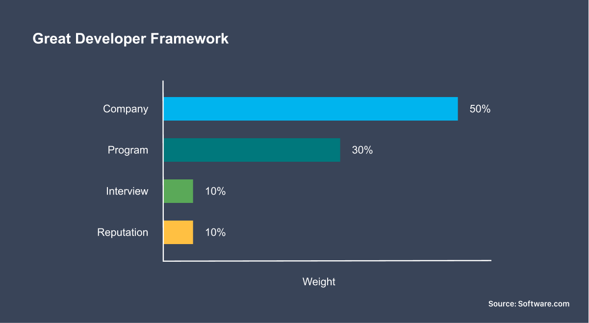 Here's a weighted framework for how great engineers are judged at the point of hiring and compensation—when "great" gets defined and converted into hard dollars and cents.